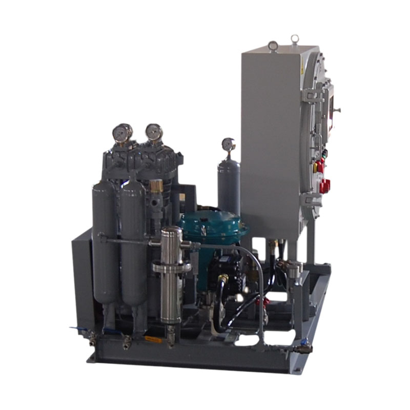 井口氣壓縮機(jī)是我公司新型產(chǎn)品,它集壓縮機(jī)、氣液分離器、安全閥冷卻器、電動機(jī)等為一體,成一完整的機(jī)組。具有功能多、體積小、重量輕、功率小、運(yùn)行平穩(wěn)可靠等特點(diǎn),并有良好的安全性能。它為輸送井口氣,可為用戶最大限度地創(chuàng)造經(jīng)濟(jì)效益。由于采用獨(dú)特的無油潤滑設(shè)計(jì),氣缸內(nèi)無需用油潤滑,因而不會對介質(zhì)造成污染,使被輸送物質(zhì)保持純凈。本機(jī)設(shè)計(jì)成機(jī)組型式,許多管線上的附件都安裝在機(jī)組上,省卻了氣液分離器、穩(wěn)壓罐、安全閥、進(jìn)氣過濾器等,減小了機(jī)房的面積,減少了操作維護(hù)工作量,節(jié)省了投資。