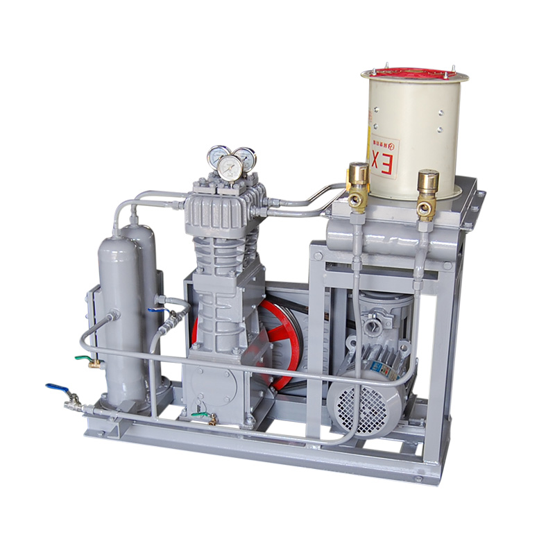 笑氣壓縮機壓縮機是我公司新型產品,它集壓縮機、氣液分離器、安全閥冷卻器、電動機等為一體,成一完整的機組。具有功能多、體積小、重量輕、功率小、運行平穩(wěn)可靠等特點,并有良好的安全性能。它為輸送笑氣,可為用戶最大限度地創(chuàng)造經濟效益。由于采用獨特的無油潤滑設計,氣缸內無需用油潤滑,因而不會對介質造成污染,使被輸送物質保持純凈。本機設計成機組型式,許多管線上的附件都安裝在機組上,省卻了氣液分離器、穩(wěn)壓罐、安全閥、進氣過濾器等,減小了機房的面積,減少了操作維護工作量,節(jié)省了投資。